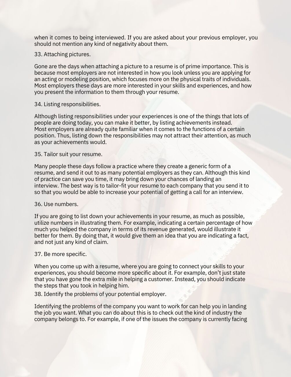 - 16 pages with illustrations (101 resume writing tips)